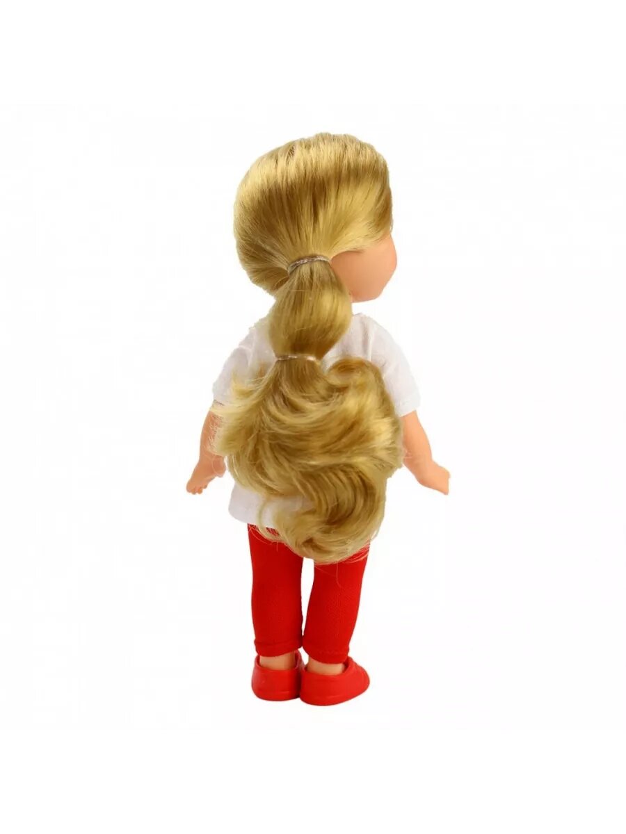 | Дополнительная информация | длина волос — 14 см; в комплект одежды входит: платье из трикотажа двух ярких цветов, на груди наклейка — котенок, застежка сзади на липкую ленту,а ногах туфельки |