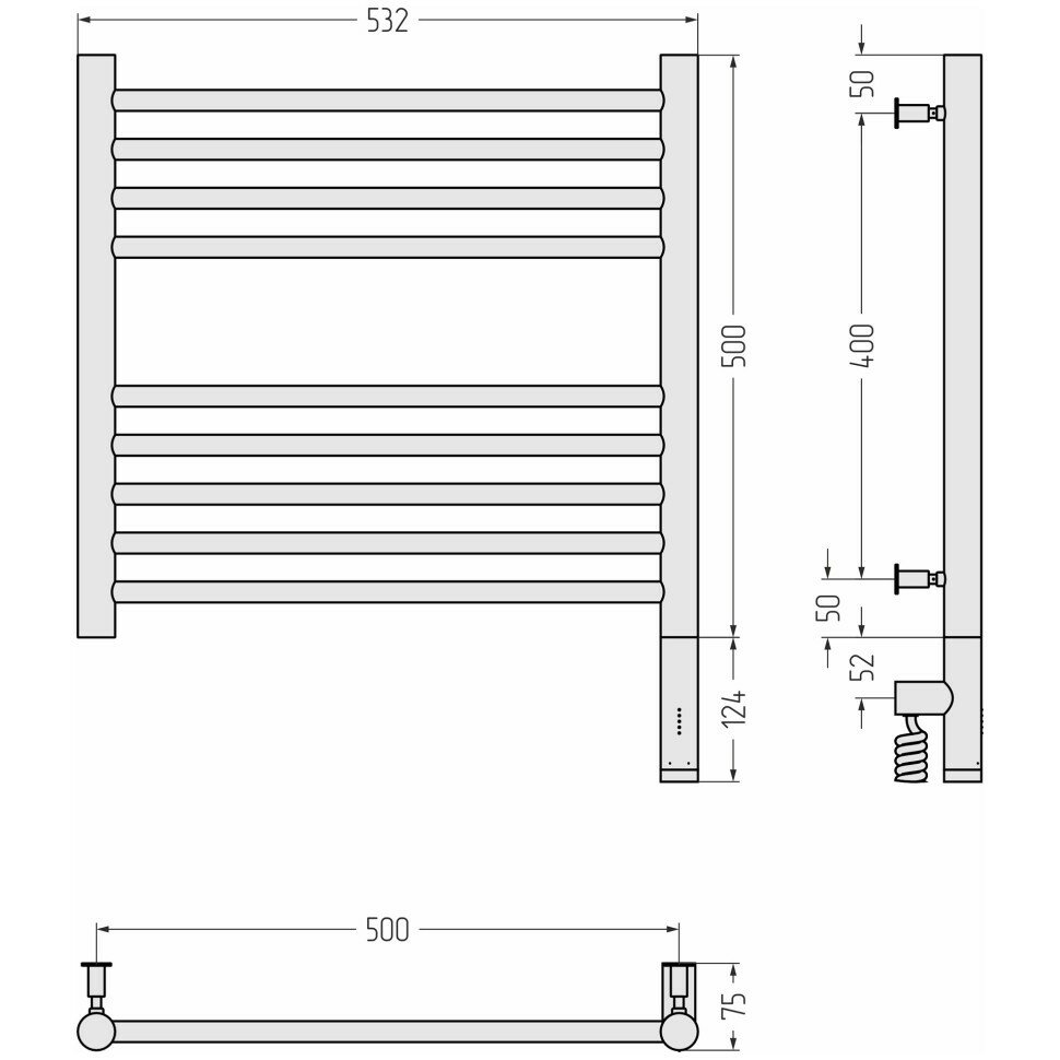 Электрический полотенцесушитель Сунержа Богема 3.0 прямая 500x500 МЭМ Пр. арт. 00-5805-5050