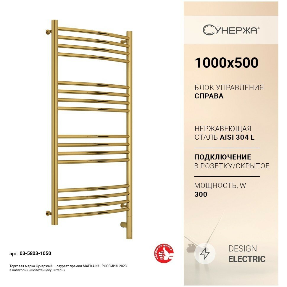 Полотенцесушитель электрический Сунержа Богема 3.0 выгнутая, 1000x500, МЭМ правый, шампань 020-5803-1050