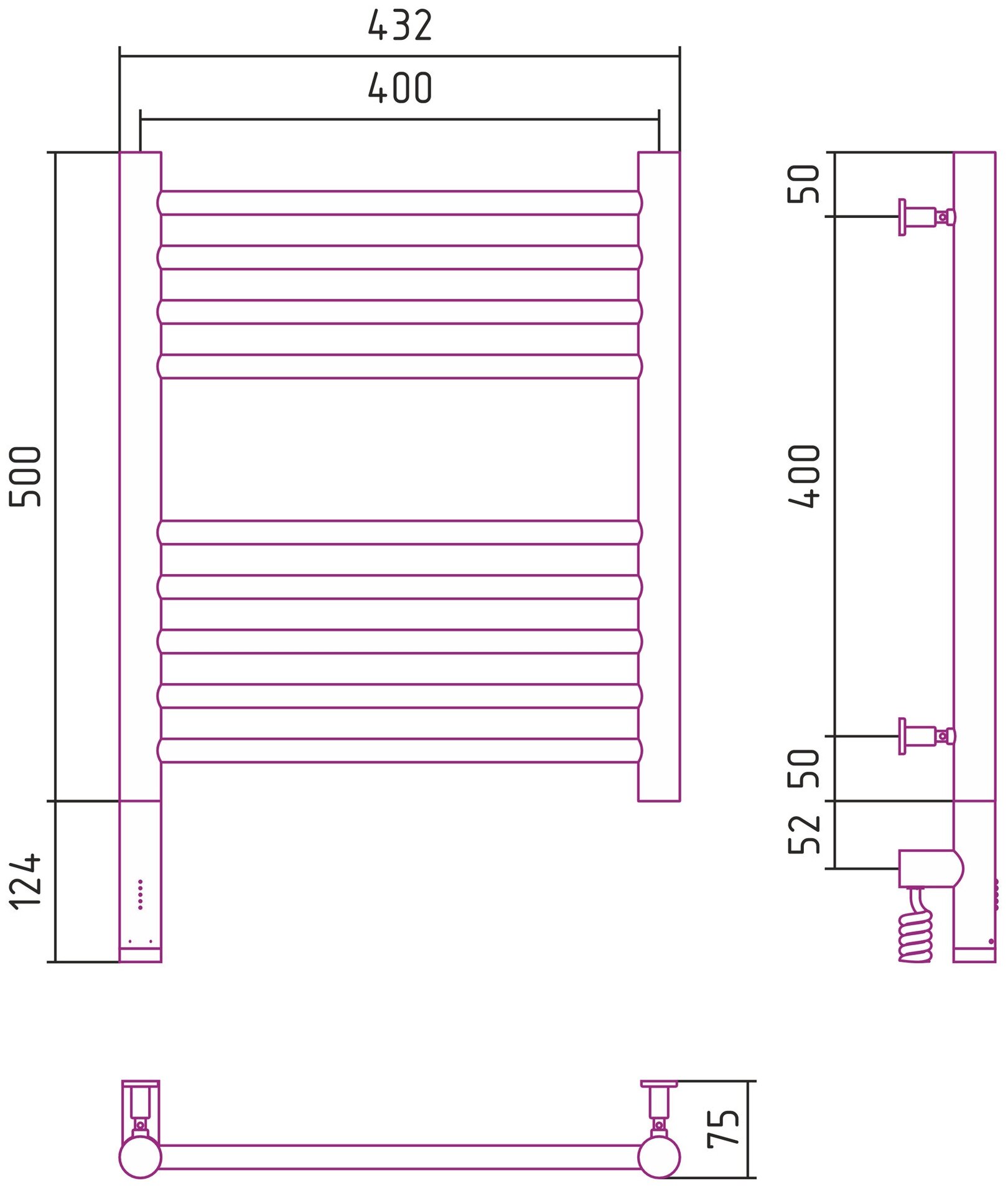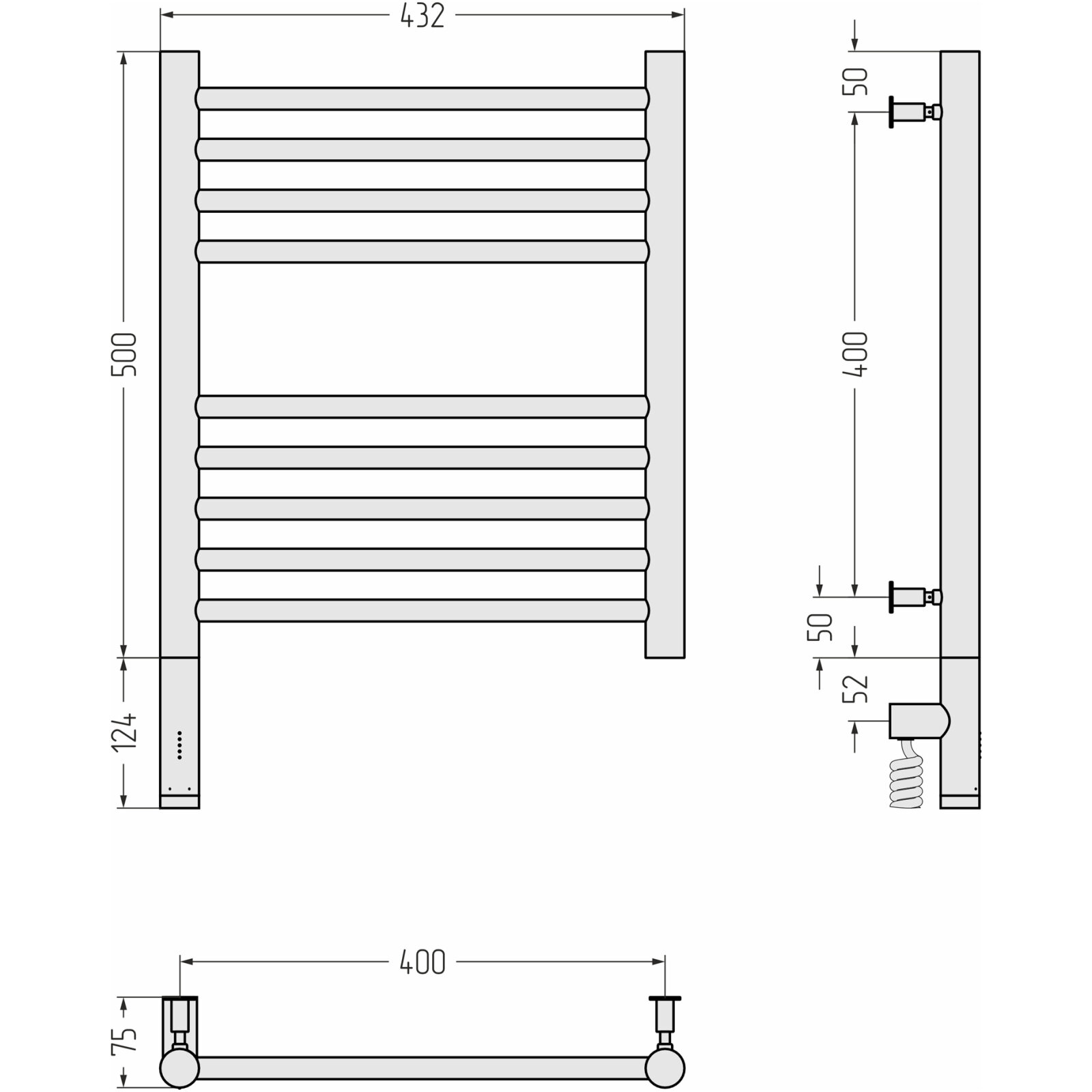 Электрический полотенцесушитель Сунержа Богема 3.0 прямая 500x400 лтэн без пoкрытия