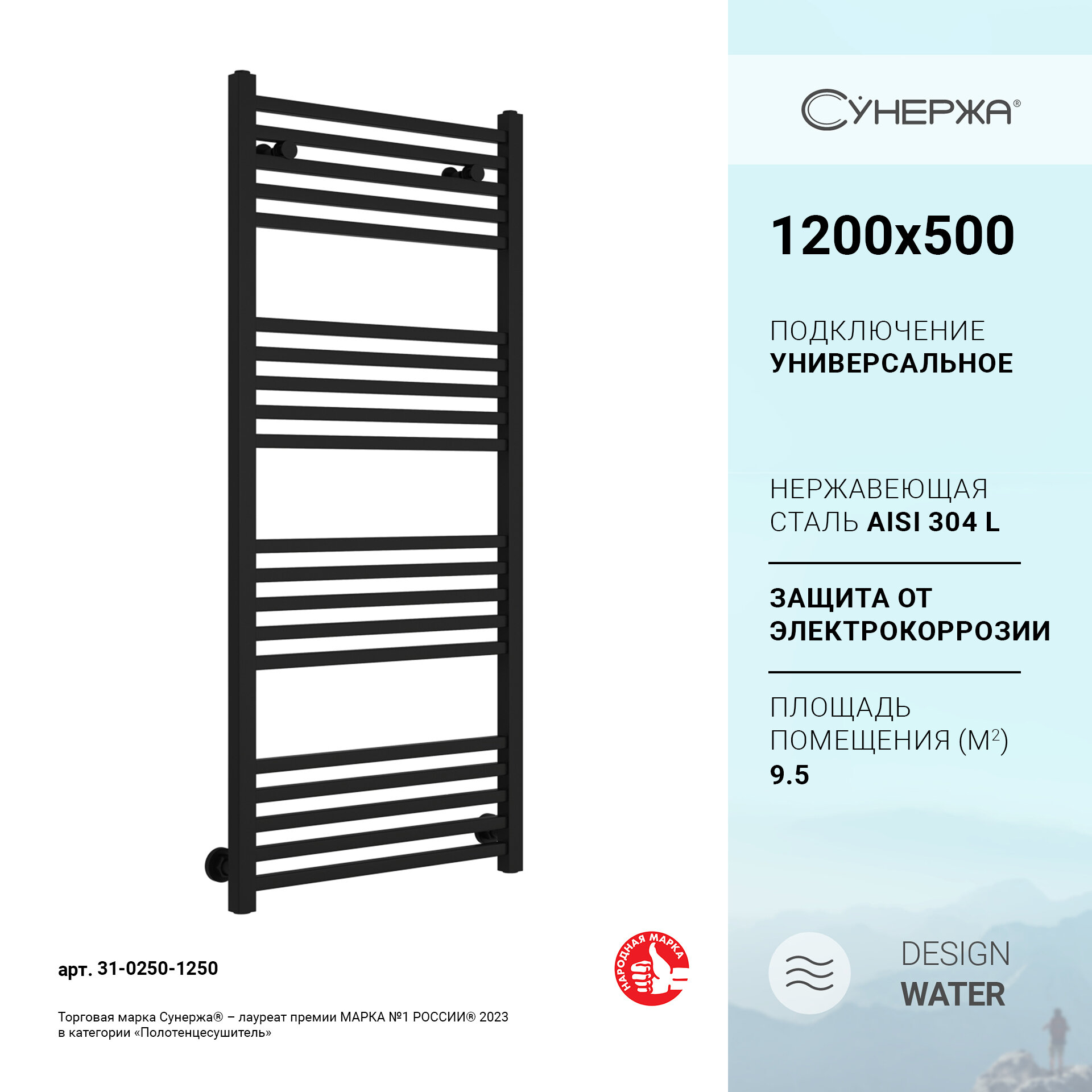 Сунержа Полотенцесушитель водяной Сунержа 31-0250-1250 Модус 1200х500 мм, матовый черный
