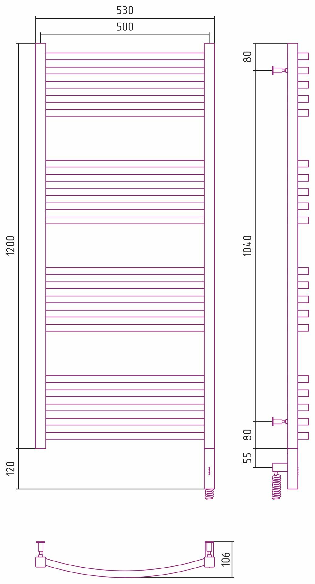 Электрический полотенцесушитель Сунержа Богема 3.0 выгнутая 600x500 лтэн без пoкрытия