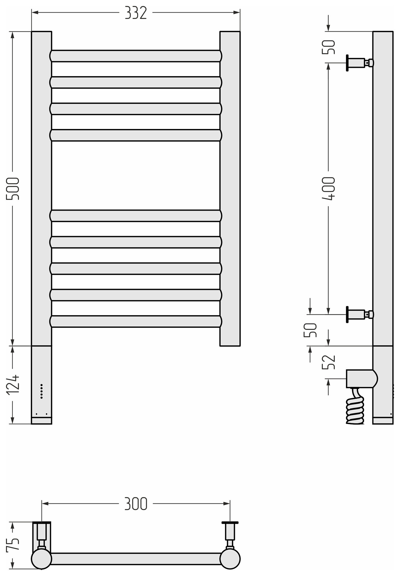Электрический полотенцесушитель Сунержа Богема 3.0 прямая 500х300 лтэн без покрытия