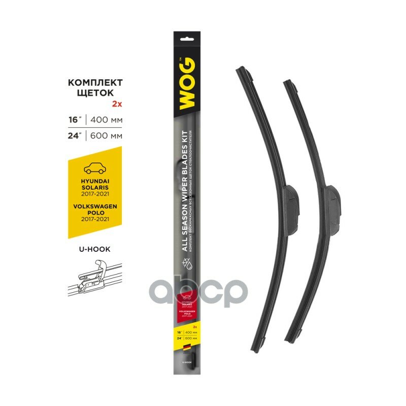 Купить WGC1415 WOG Комплект всесезонных бескаркасных бесшумных щеток стеклоочистителя 600мм/24 +400мм/16 (SOLARIS/POLO