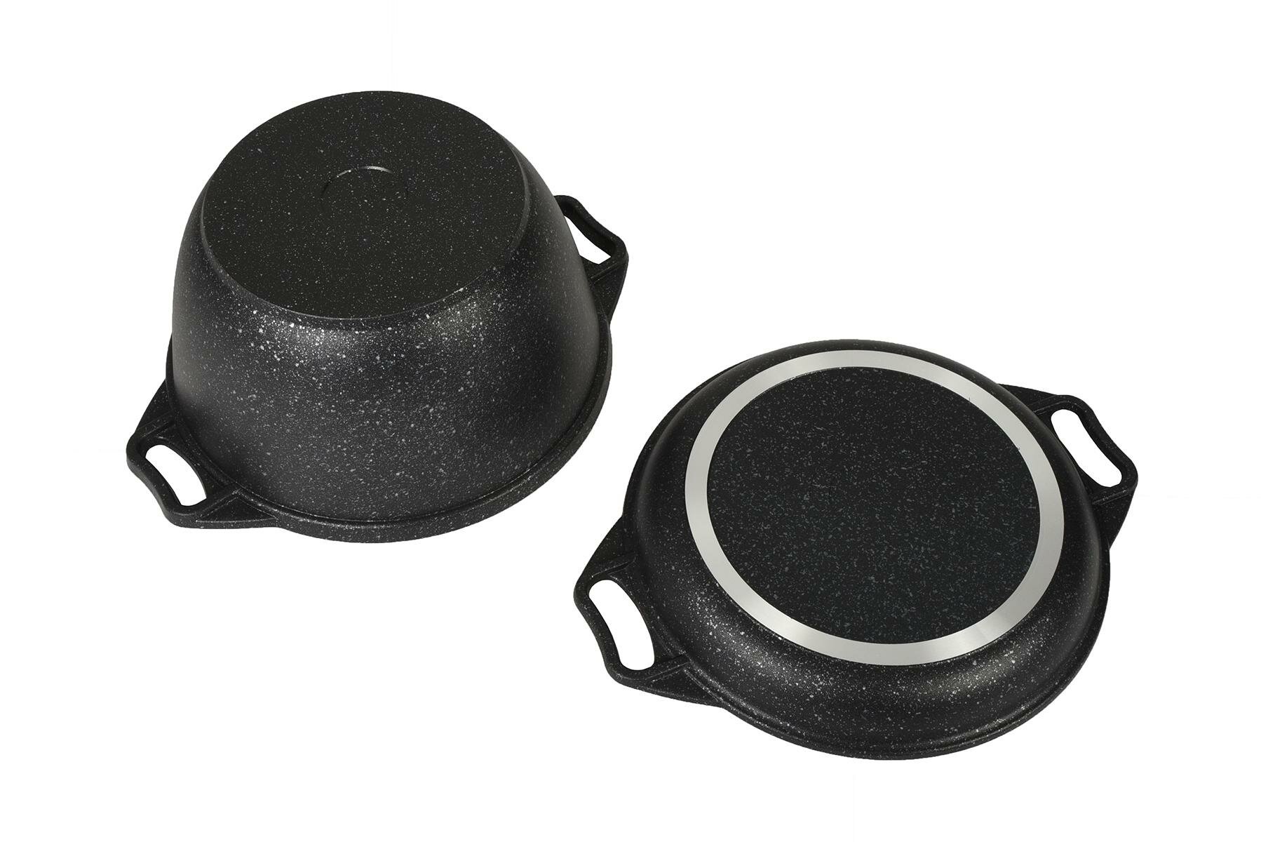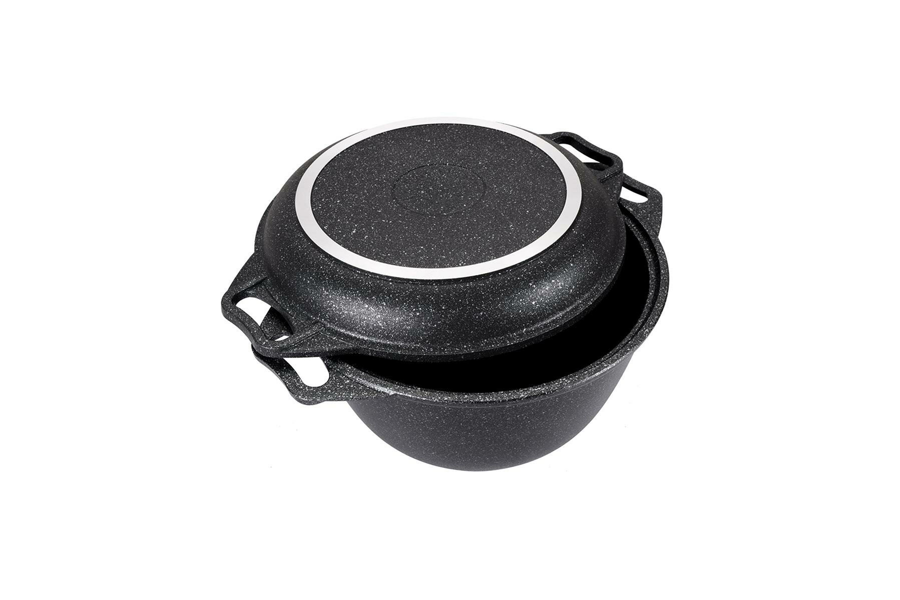 Казан KUKMARA Темный мрамор литой 3,0 л с крышкой-сковородой