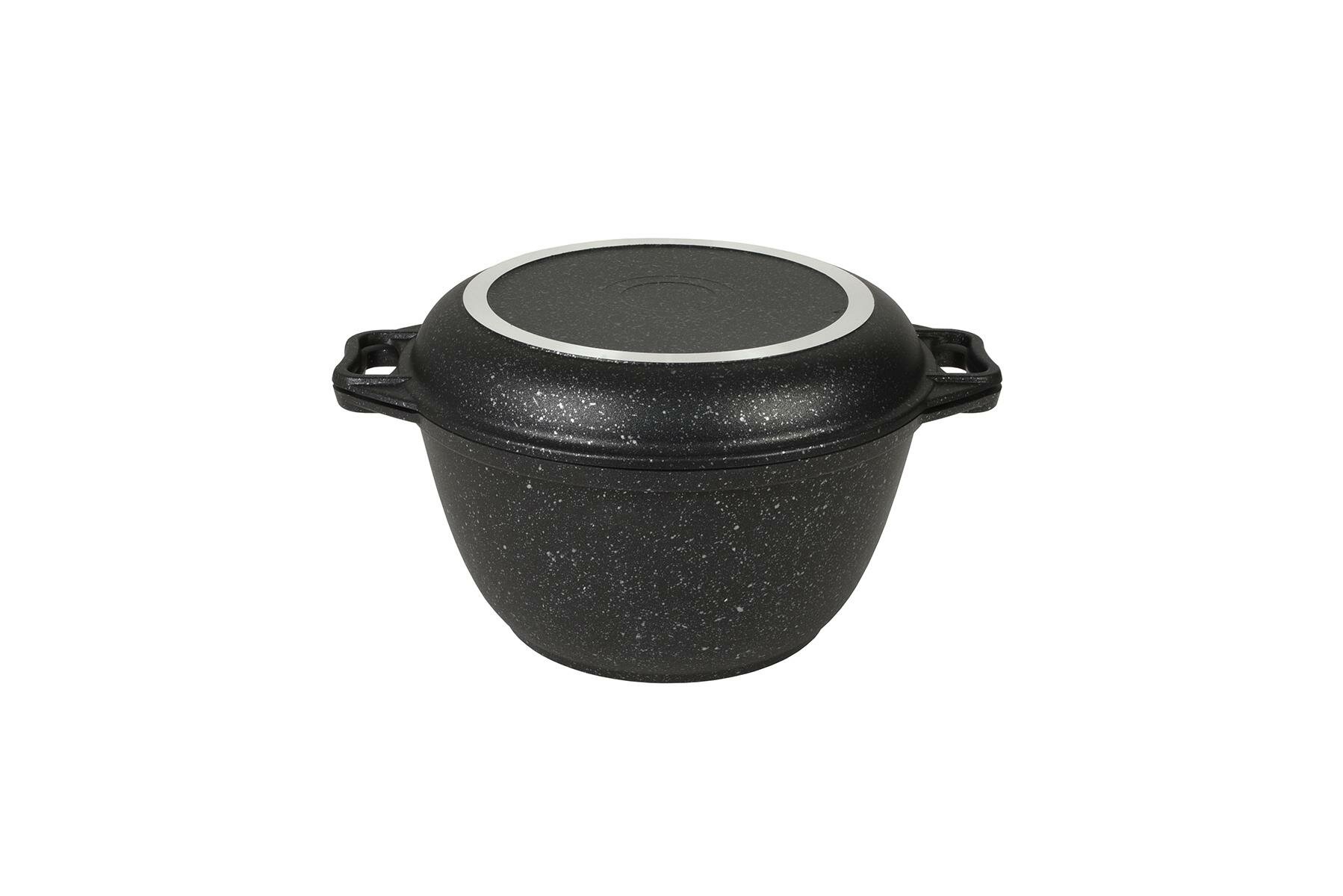 Казан Kukmara "Темный мрамор" с крышкой-сковородой, с антипригарным покрытием, 3 л