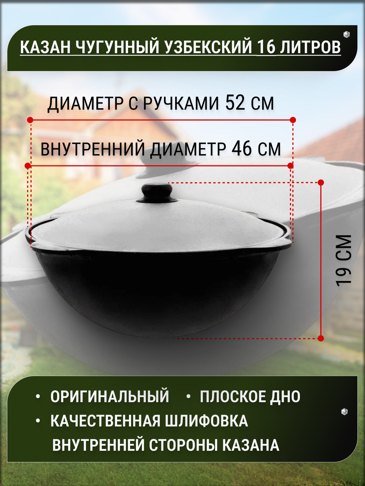 Ниже Вы можете прочитать отзывы на Казан 16 л. чугунный Узбекский с крышкой алюминиевой в комплекте + тренога со съемные ножками (подставка под казан), ознакомится с подробными характеристиками, посмотреть интересные обзоры и фотографии на Казан 16 л. чугунный Узбекский с крышкой алюминиевой в комплекте + тренога со съемные ножками (подставка под казан).