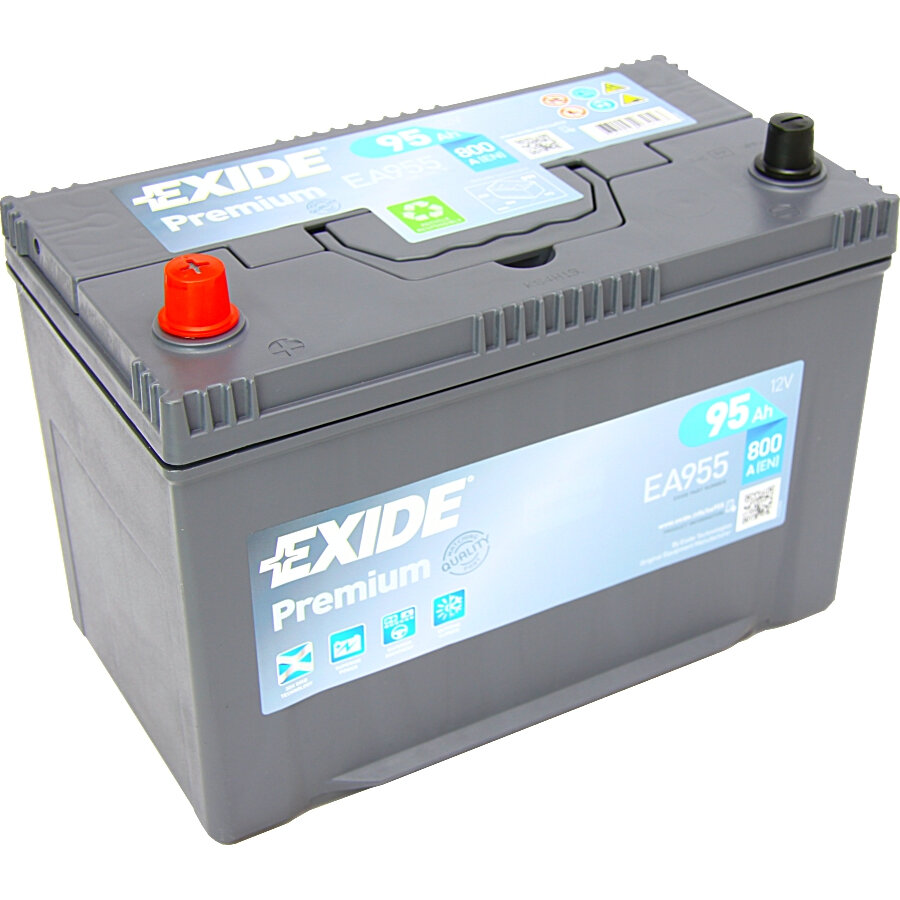 Аккумулятор автомобильный Exide Premium 95 А/ч 800 А прям. пол. EA955 Азия авто (306x173x225) с бортиком 2021г
