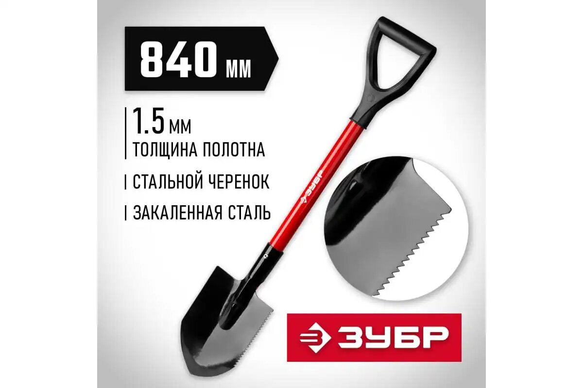 ЗУБР мастер, 210х155х840мм, полотно 1.5мм, закалено, стальной черенок с рукояткой, автомобильная лопата (39258)
