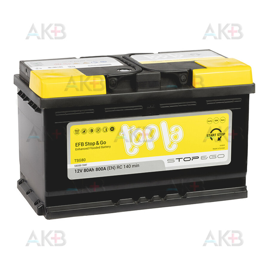 Аккумулятор Topla Efb Stop&Go 80 А/Ч Обратная R+ 58088 315X175x190 En800а Topla арт. 112080