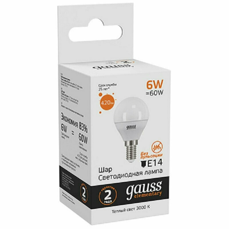 Ниже Вы можете прочитать отзывы на Лампа Gauss LED Elementary Globe шар 6W E14 3000K (1/10/50), ознакомится с подробными характеристиками, посмотреть интересные обзоры и фотографии на Лампа Gauss LED Elementary Globe шар 6W E14 3000K (1/10/50).