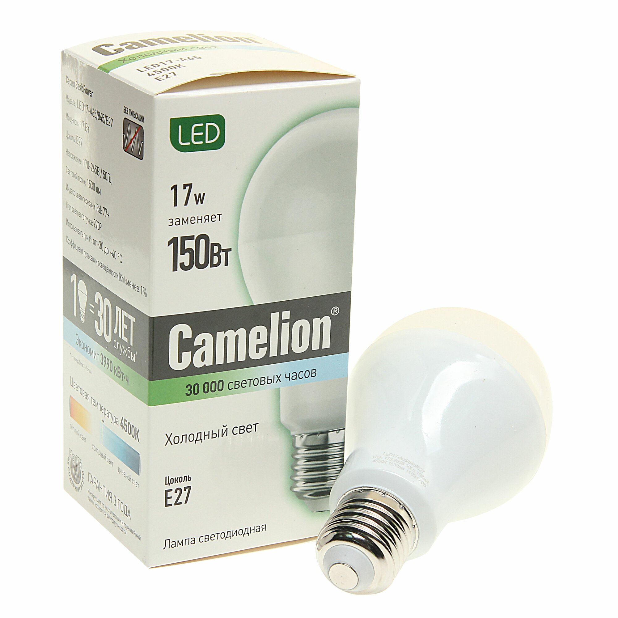 СохранитьLED лампа груша 17Вт Е27 4500К(холодный свет) - LED17-A65/845/E27(Camelion)(код 12309) интересное:
