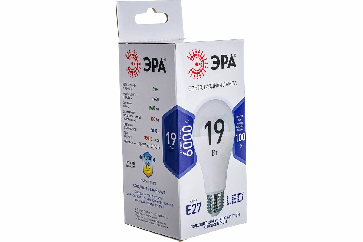 Светодиодная лампа ЭРА LED A65-19W-860-E27 10/100/1200