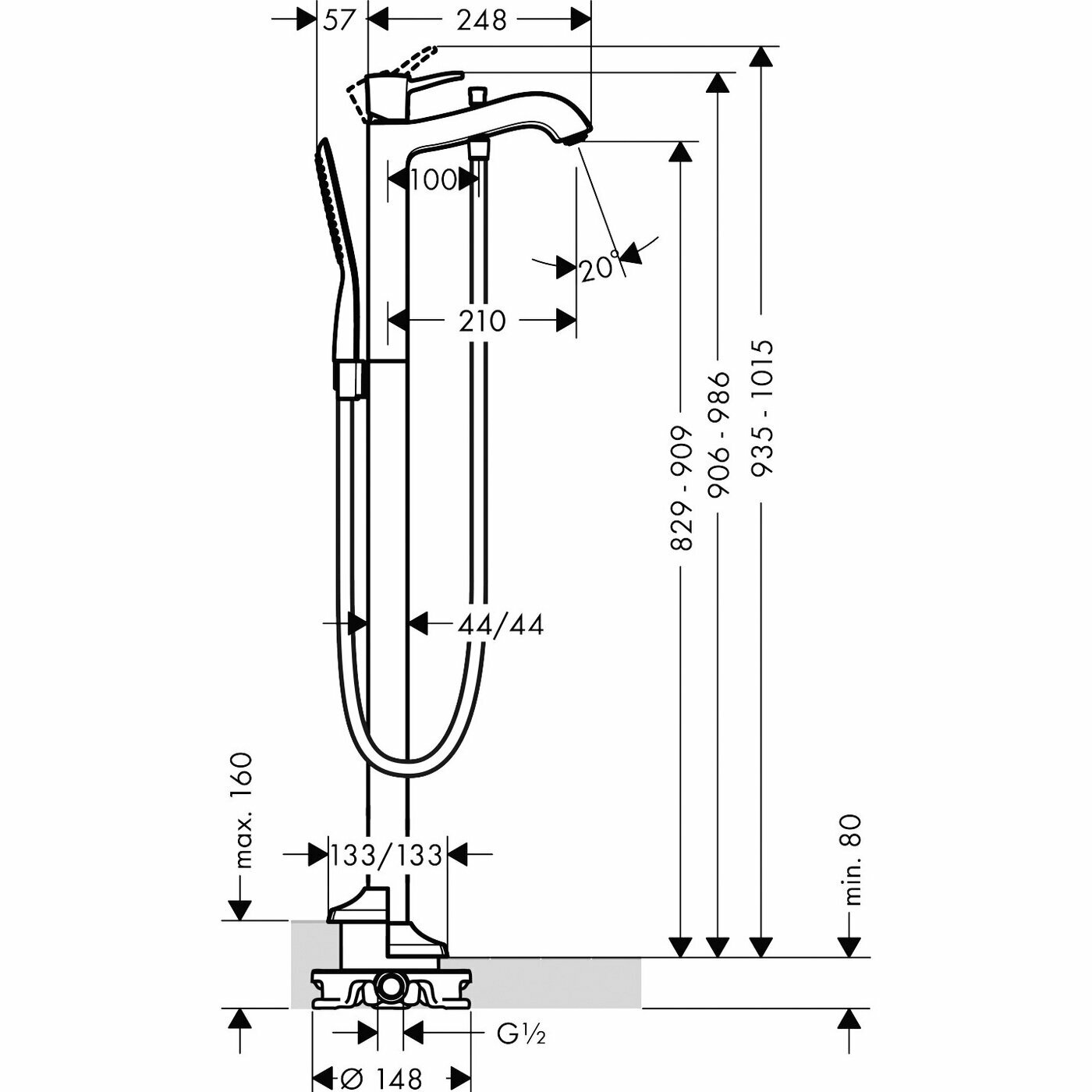 Metropol Classic Смеситель для ванны однорычажный напольный с рычаговой рукояткой, 31445090