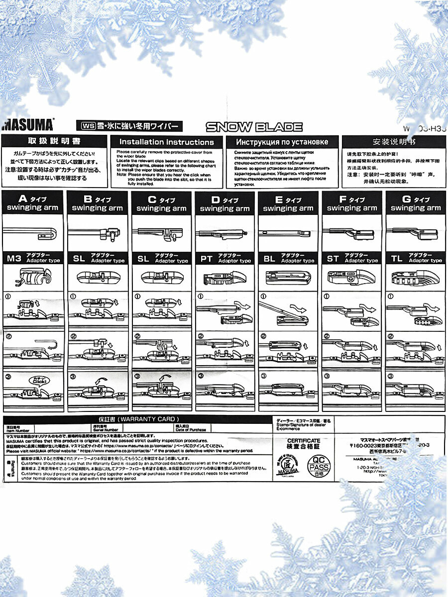 Дворник "MASUMA" зима "Оптимум" 18", 6 креплений (450мм) MU-018Ws