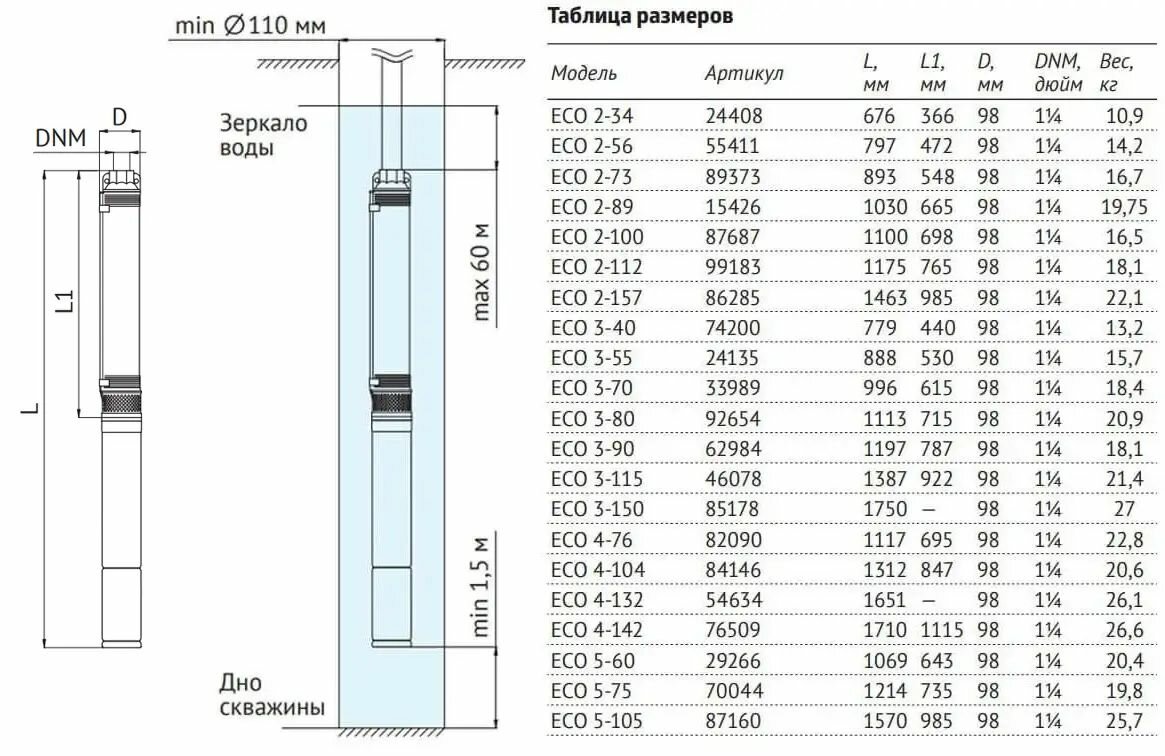 Насос погружной 4" ECO 2-73 (0.75 кВт,40 м), шт