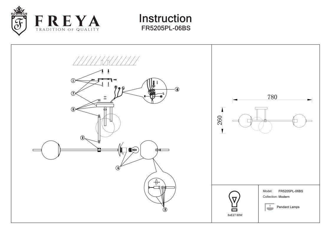 Светильник потолочный Freya Agnes, FR5184PL-06BS, 300W, E14