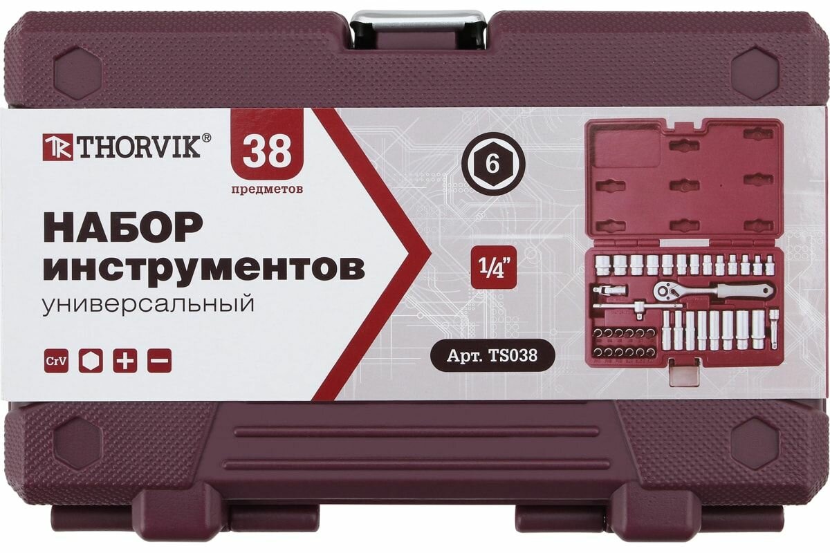 Набор инструмента 1/4"DR, 38 предметов TS038 THORVIK