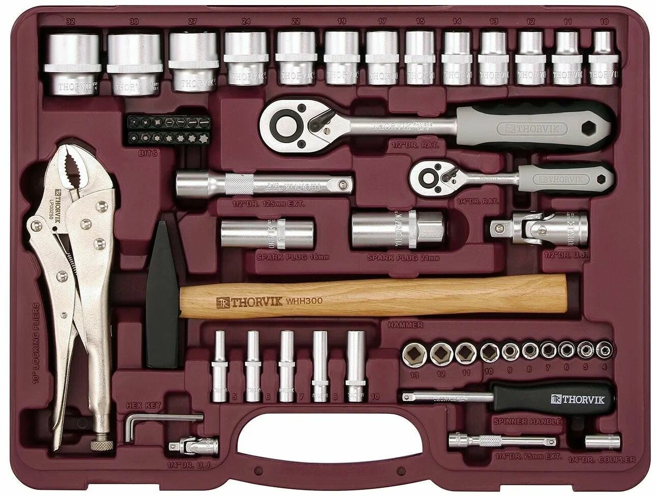 THORVIK UTS0142 Набор инструмента универсальный 1/4", 3/8" и 1/2"DR, 142 предмета THORVIK