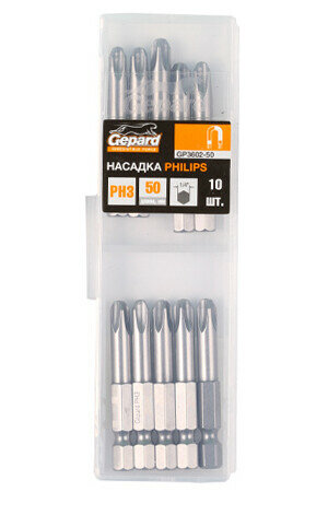 Бита насадка для шуруповерта магнитная PH2 50 мм 10 штук GEPARD GP3601-50 интересное: