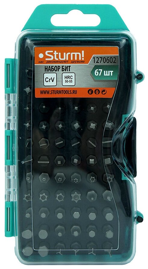 Набор бит, 67 шт, 25мм, пластиковый кейс, CrV, Sturm!