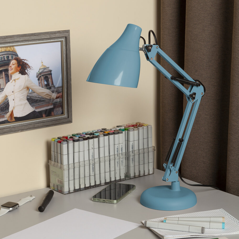 Лампа офисная ЭРА N-123-Е27-40W-GY, E27, 40 Вт, цвет арматуры: голубой, цвет плафона/абажура: голубой