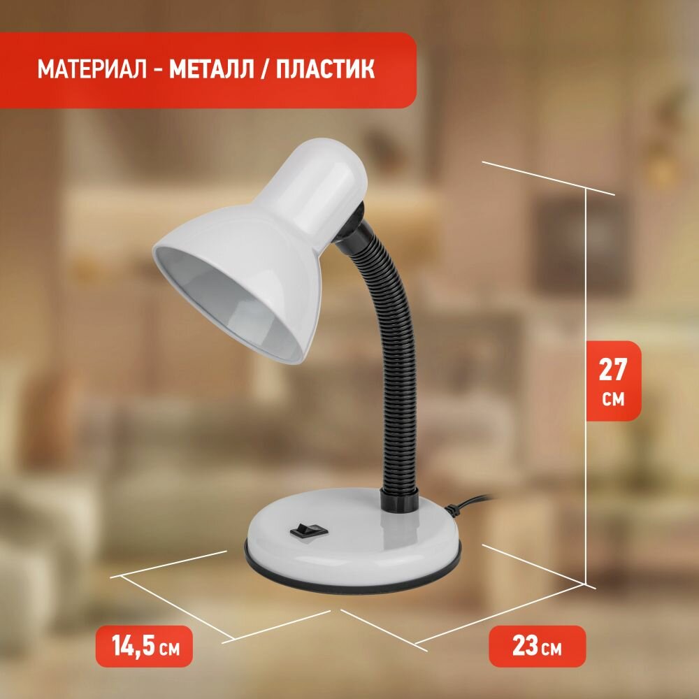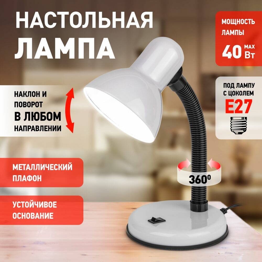 Купить Лампа настольная E27 офисная для школьника ЭРА N-120-E27-40W-W, хай-тек, лофт, классика, белый