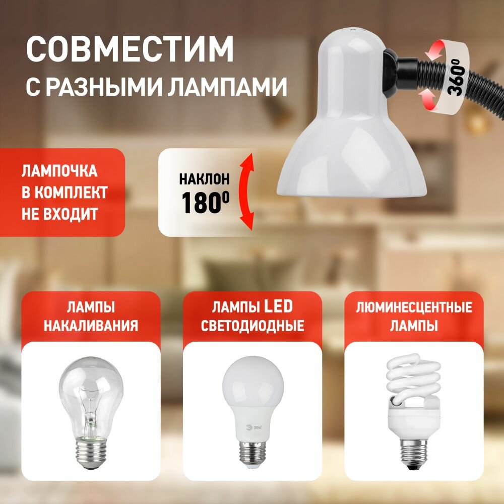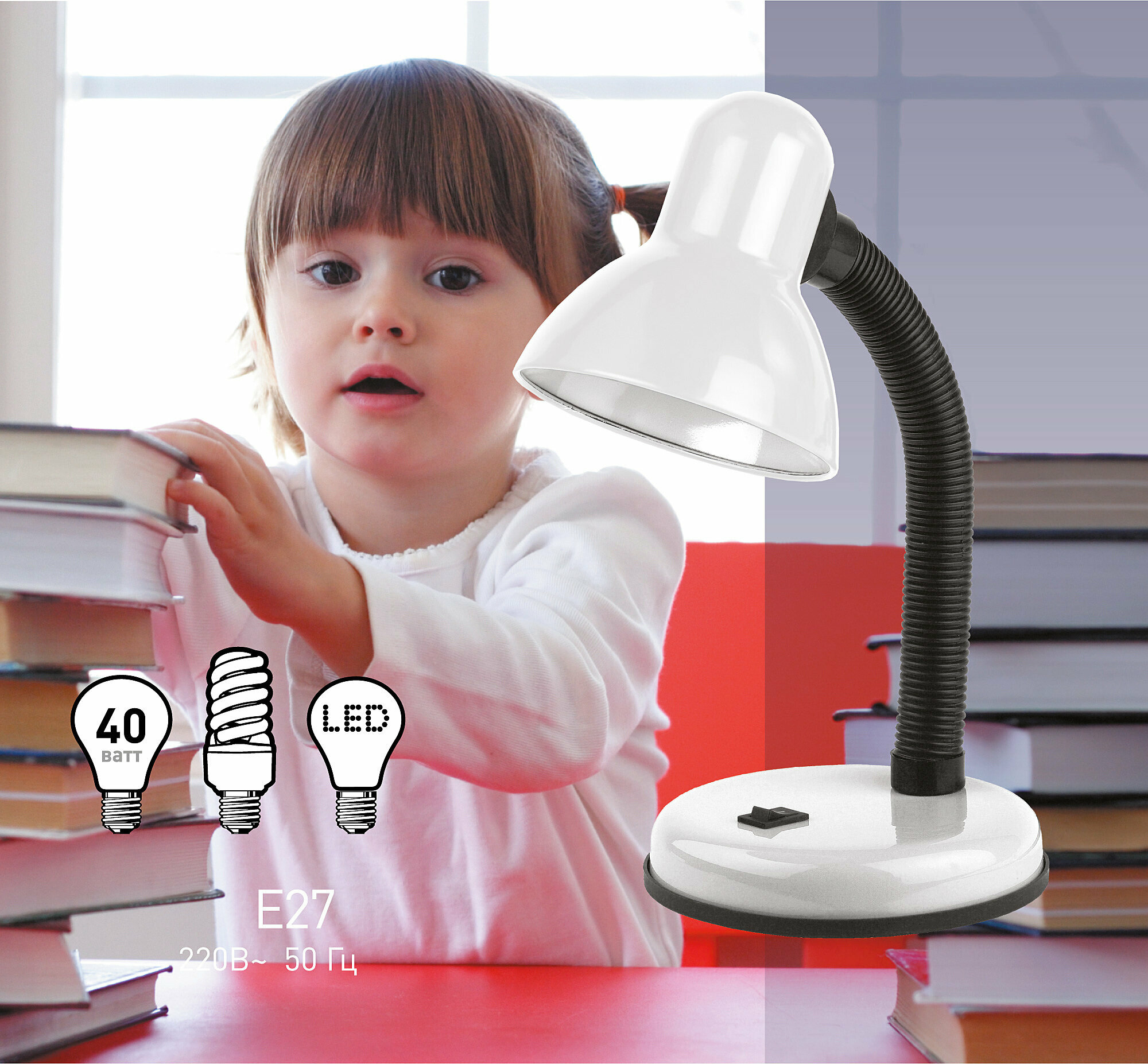 СохранитьЛампа настольная E27 офисная для школьника ЭРА N-120-E27-40W-W, хай-тек, лофт, классика, белый интересное: