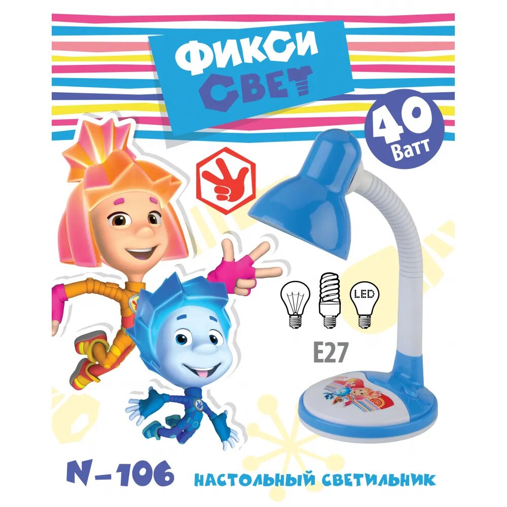 Лампа настольная E27 детская для школьника, для учебы, для чтения ЭРА N-106-E27-40W-R Фиксики синий интересное: