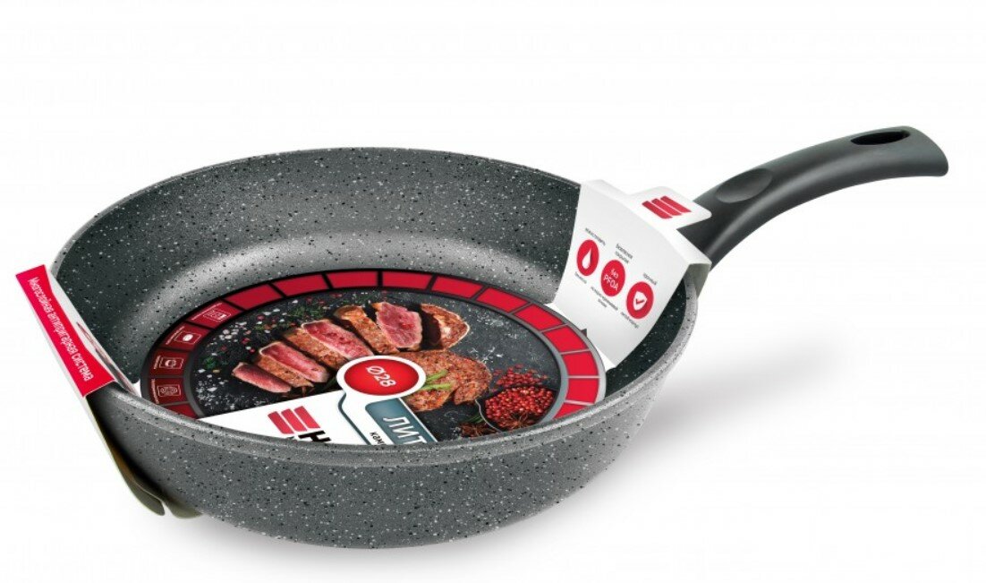 Сковорода НМП "Каменная" Серый гранит 24 см, 19124 .