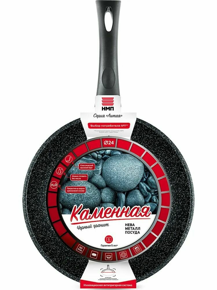 Сковорода Нева Металл Посуда НМП "Каменная" Серый гранит 24 см, 19124