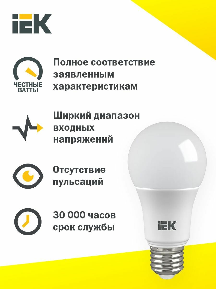 Лампа светодиодная IEK ECO 4000K, E27, A80, 25 Вт, 4000 К