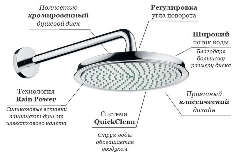 Верхний душ Hansgrohe Raindance Classic AIR Ø 240 мм, держатель 383 мм, ½’ 27424000 интересное:
