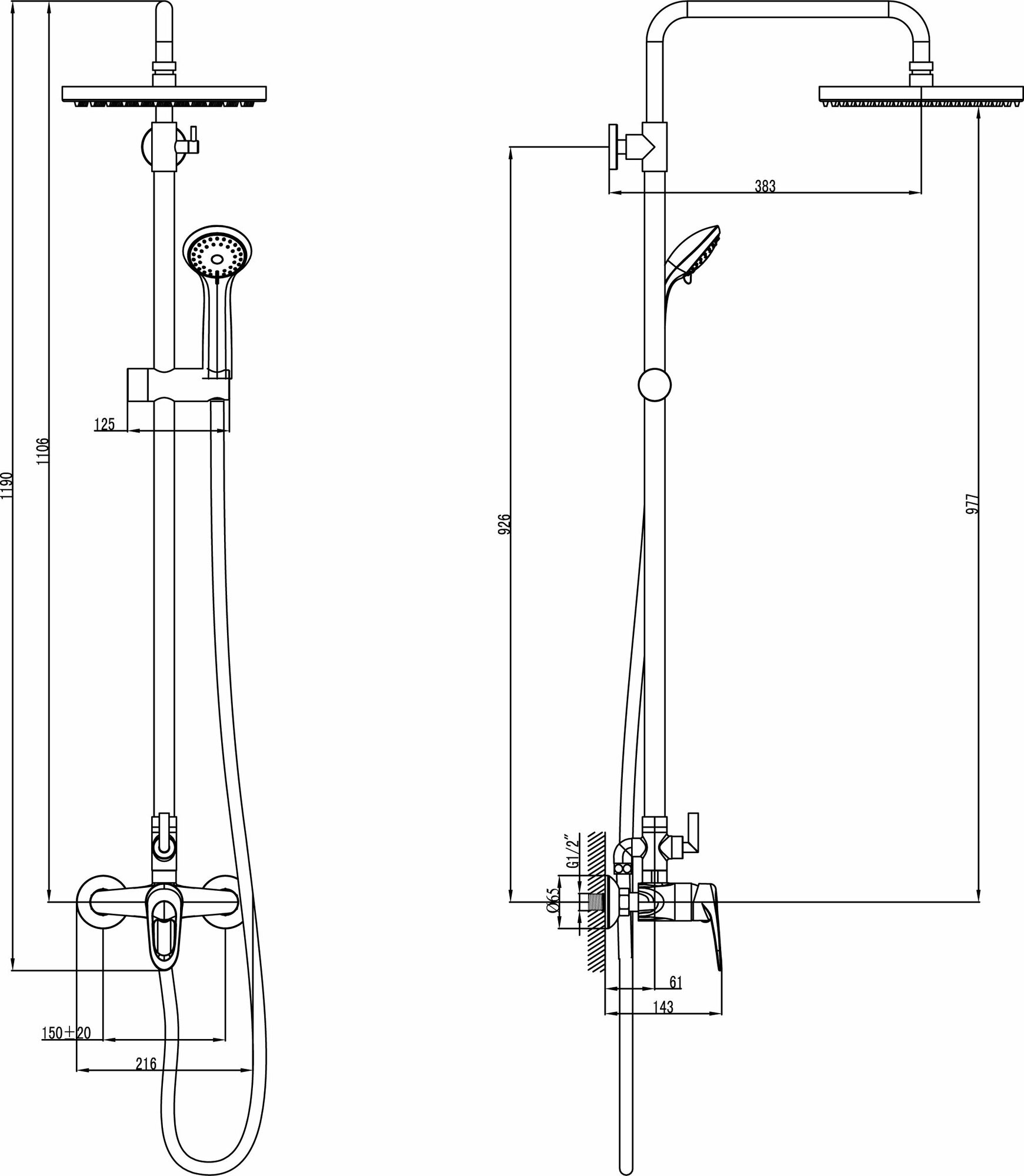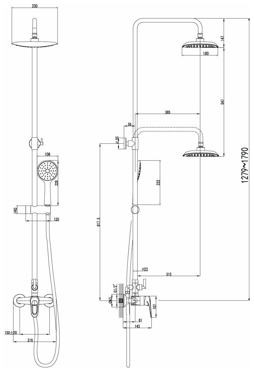 | Дополнительная информация | высота стойки для душа: 1706 мм; длина верхнего душа: 180 мм; ширина верхнего душа: 230 мм |