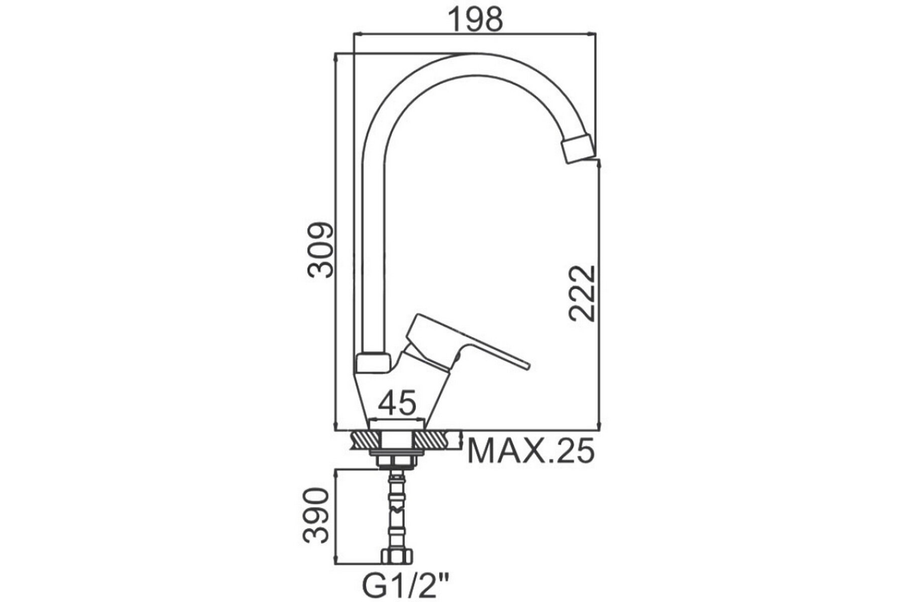 Смеситель для кухни картридж д.35мм, высокий, с гайкой, LEDEME L5803