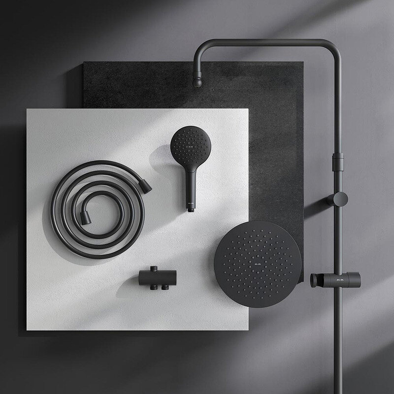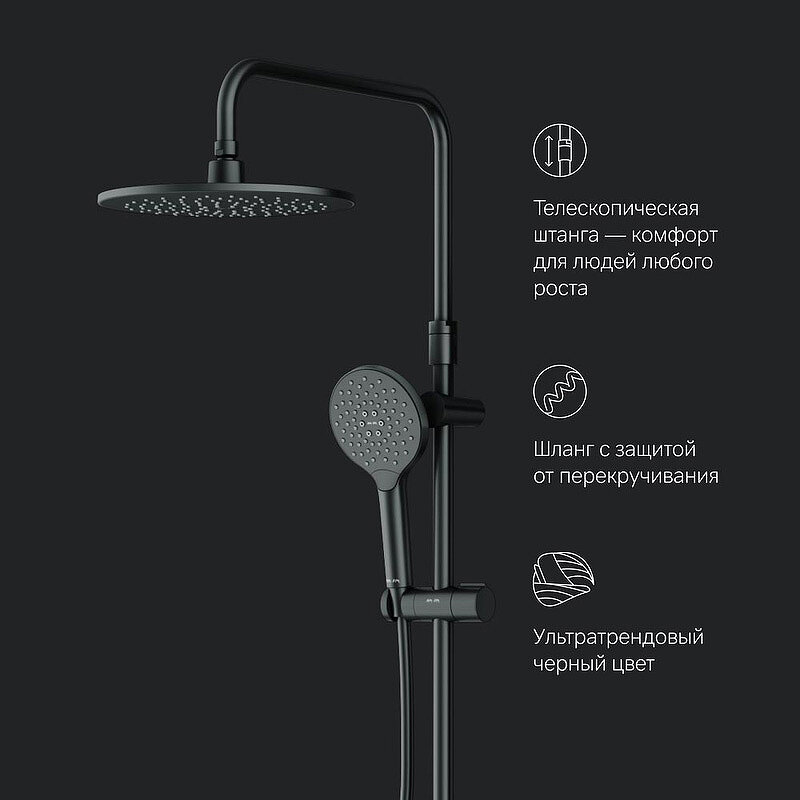 Душевая система AM.PM Like F0780022 стойка с тропическим душем, черная матовая