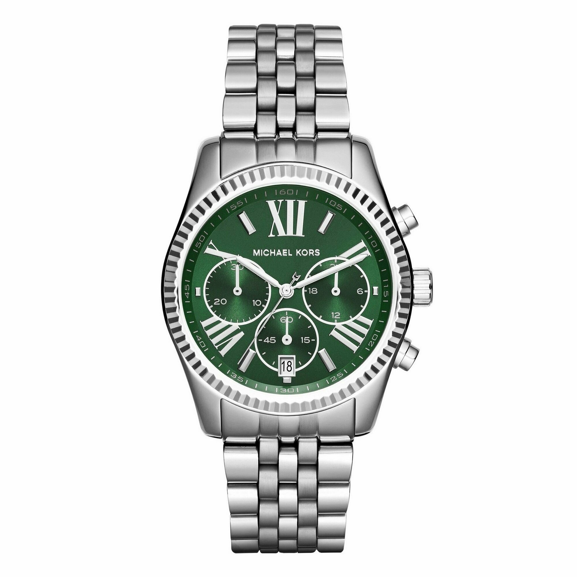 Наручные часы Michael Kors серебристые с зеленым циферблатом, хронограф