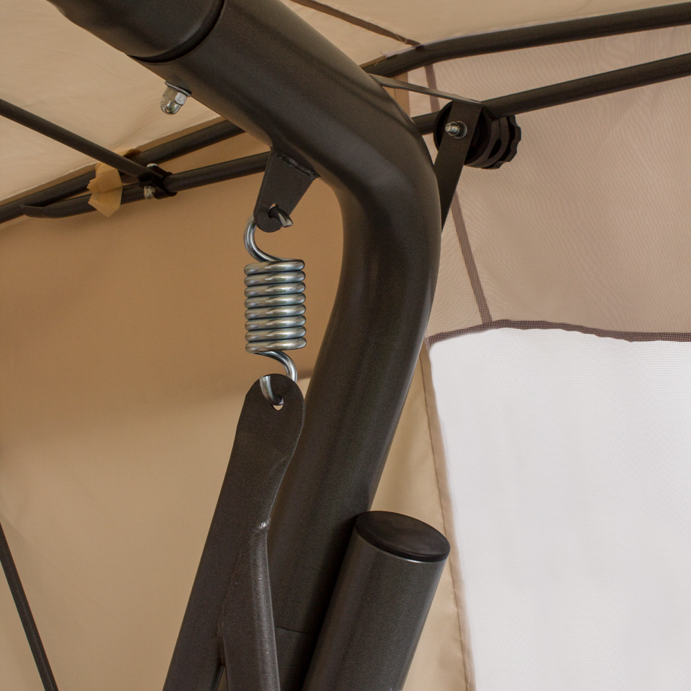 Качели садовые 4-х местные Ольса Шатер ткань панама каркас коричневый, ткань полоска бежево-коричневная