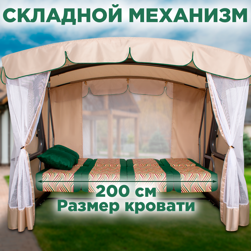 Садовые качели эдем премиум для дачи уличные 4-местные подвесные с тентом и москитной сеткой зелeный интересное: