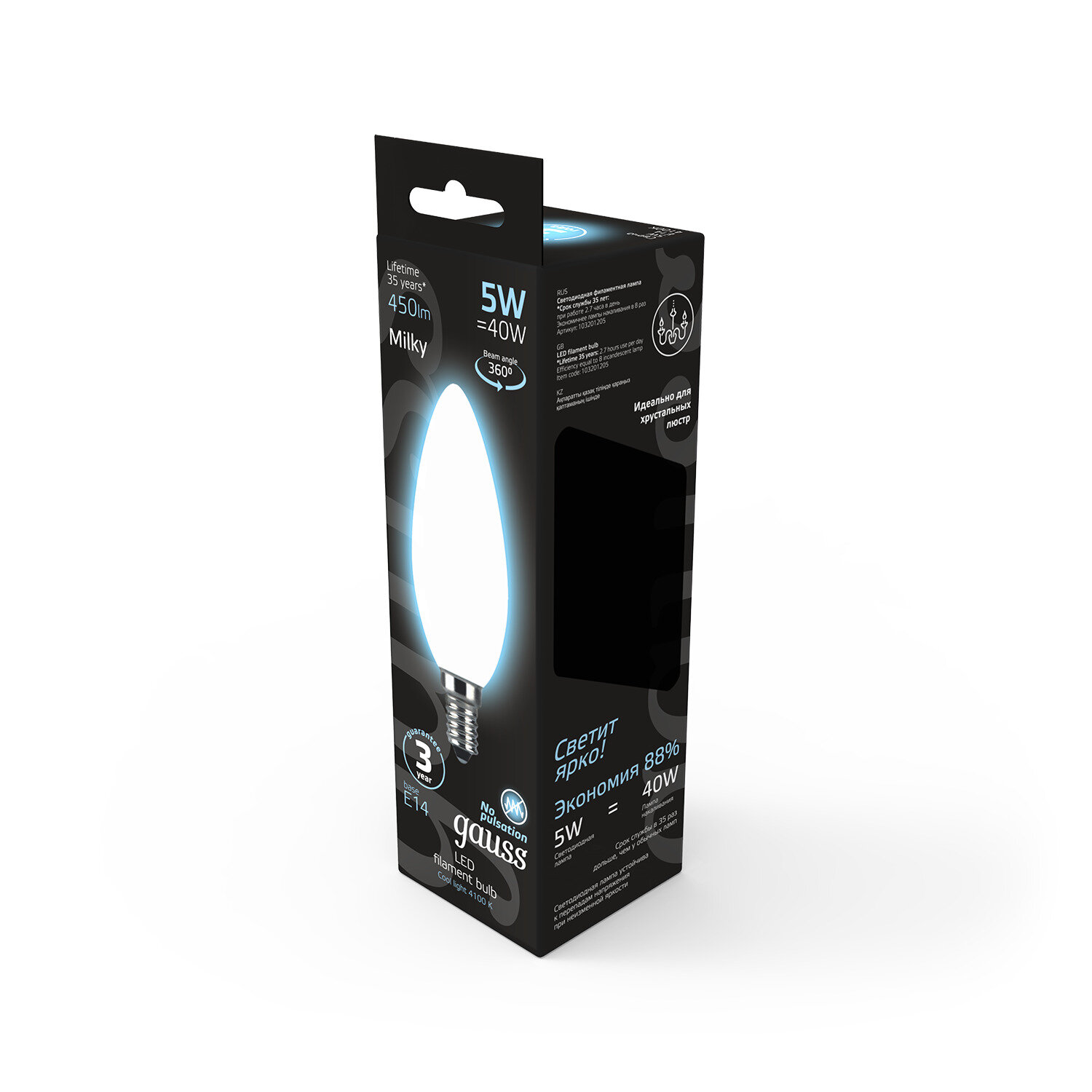 Светодиодная лампа Gauss LED Filament Candle OPAL E14 5W 4100К (упаковка 10 шт)