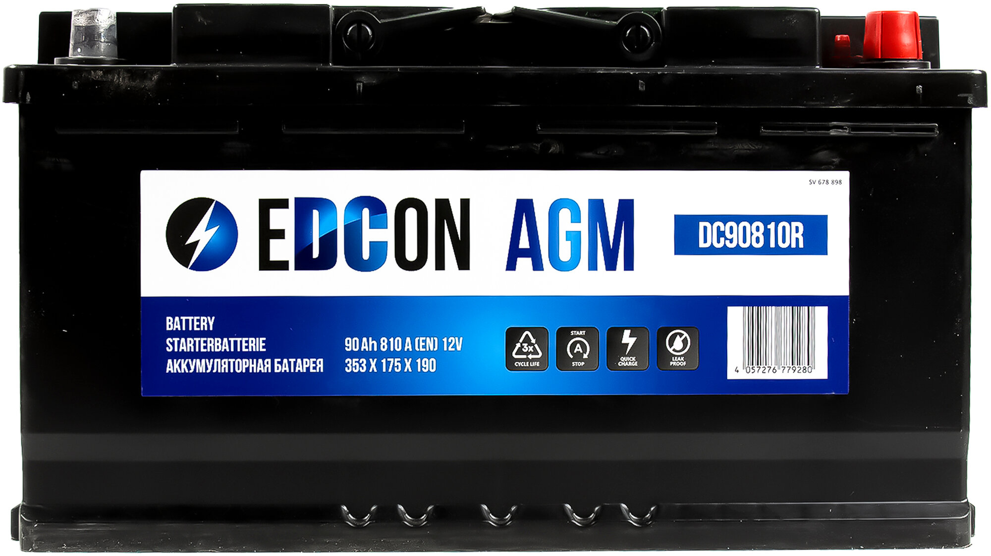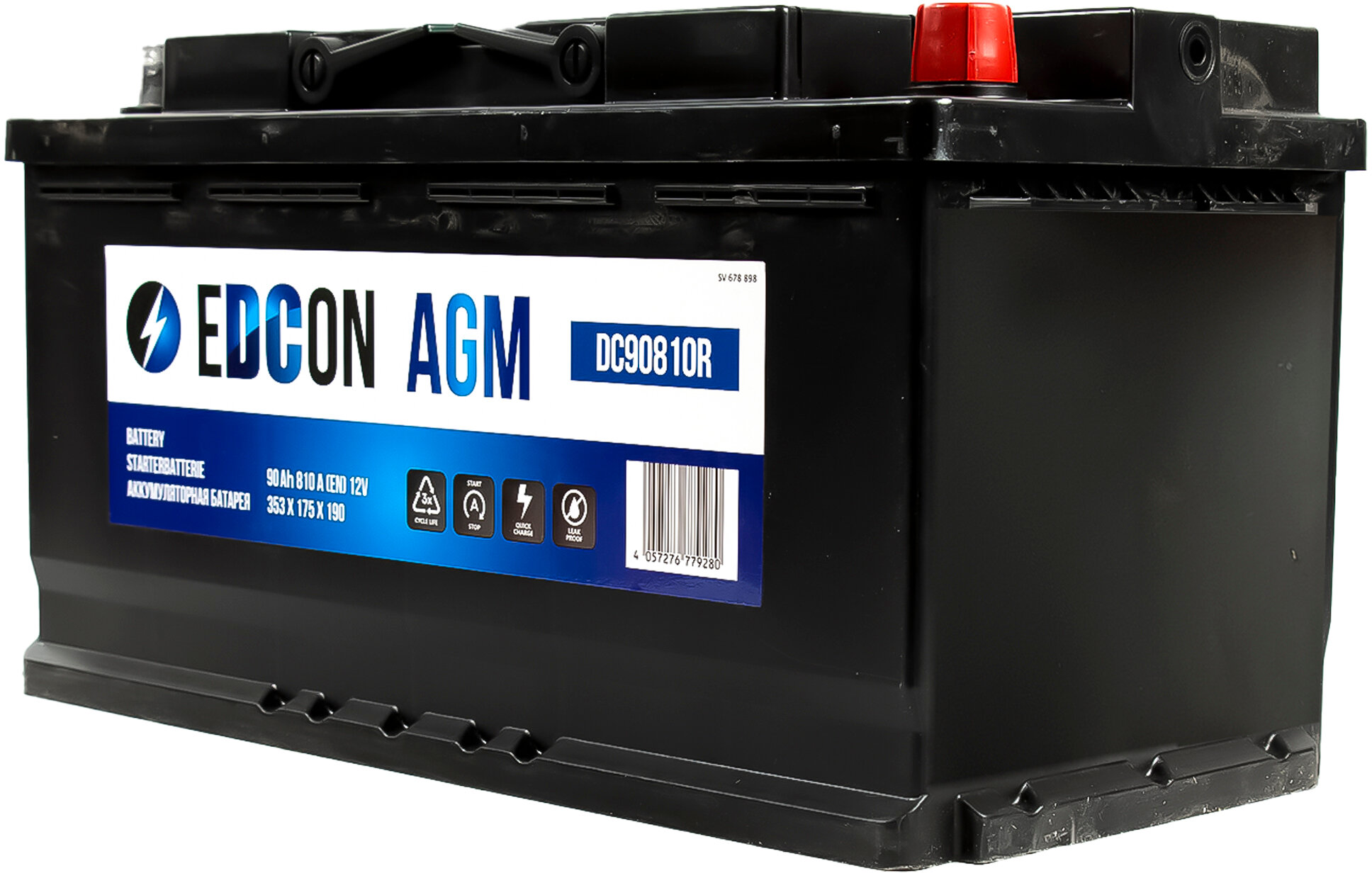 EDCON DC90810R DC90810R_аккумуляторная батарея! 19.5/17.9 евро 90Ah 810A 353/175/190 B13 AGM\ 1шт
