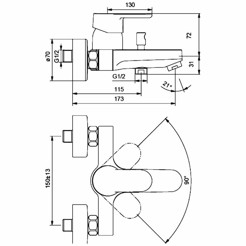 Ideal Standard VITO Смеситель для ванны/душа B0412AA настенный, однозахватный, хром