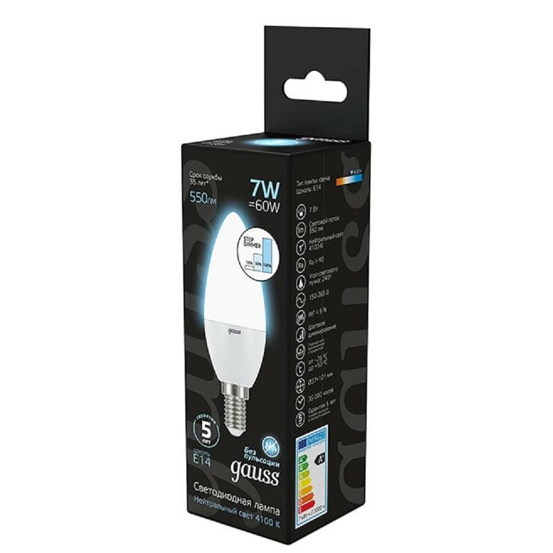 Светодиодная лампа Gauss LED Candle E14 7W 4100К step dimmable (пошаговое диммирование)