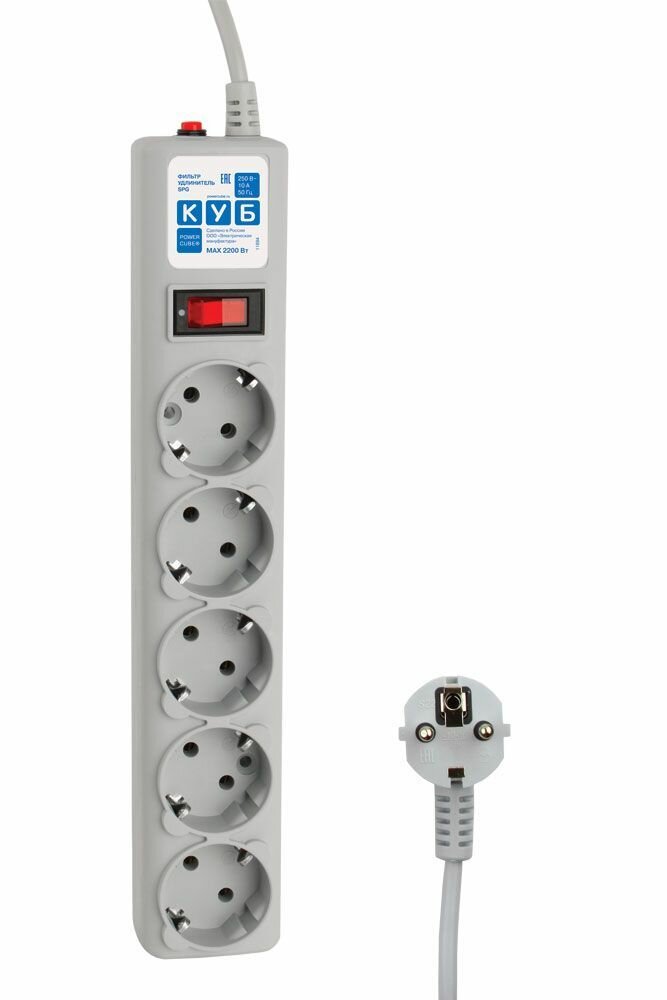Фильтр-удлинитель Power Cube B gray (1,9 м, 5 розеток, 10А/2,2кВт) (SPG-B-6)