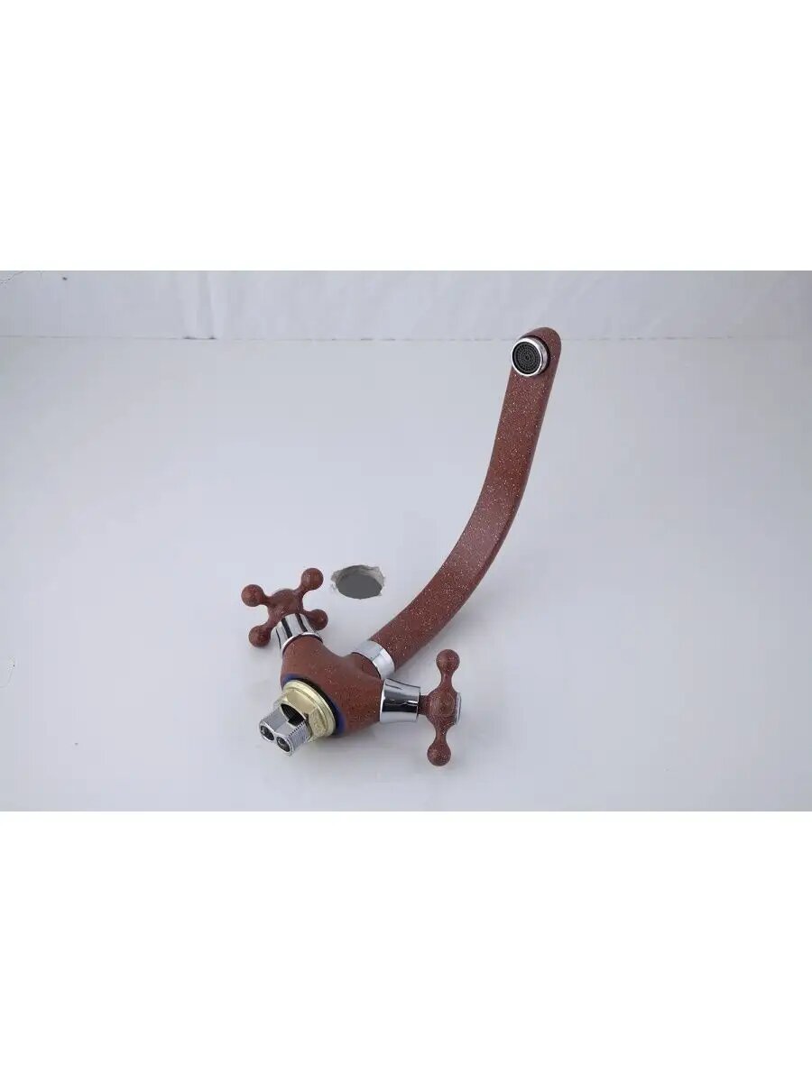 Смеситель для кухни двухручковый, с высоким изливом, кран-букса, на гайке, латунь, Темно-коричневый камень