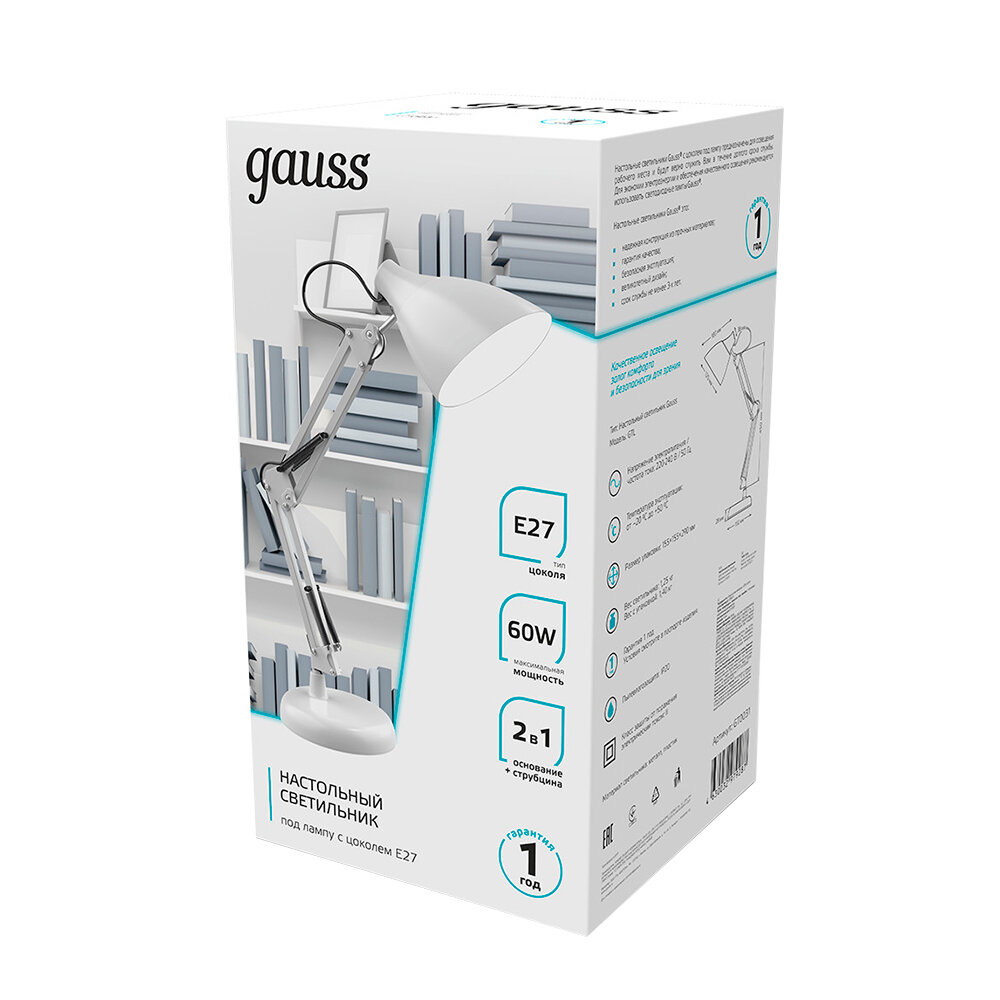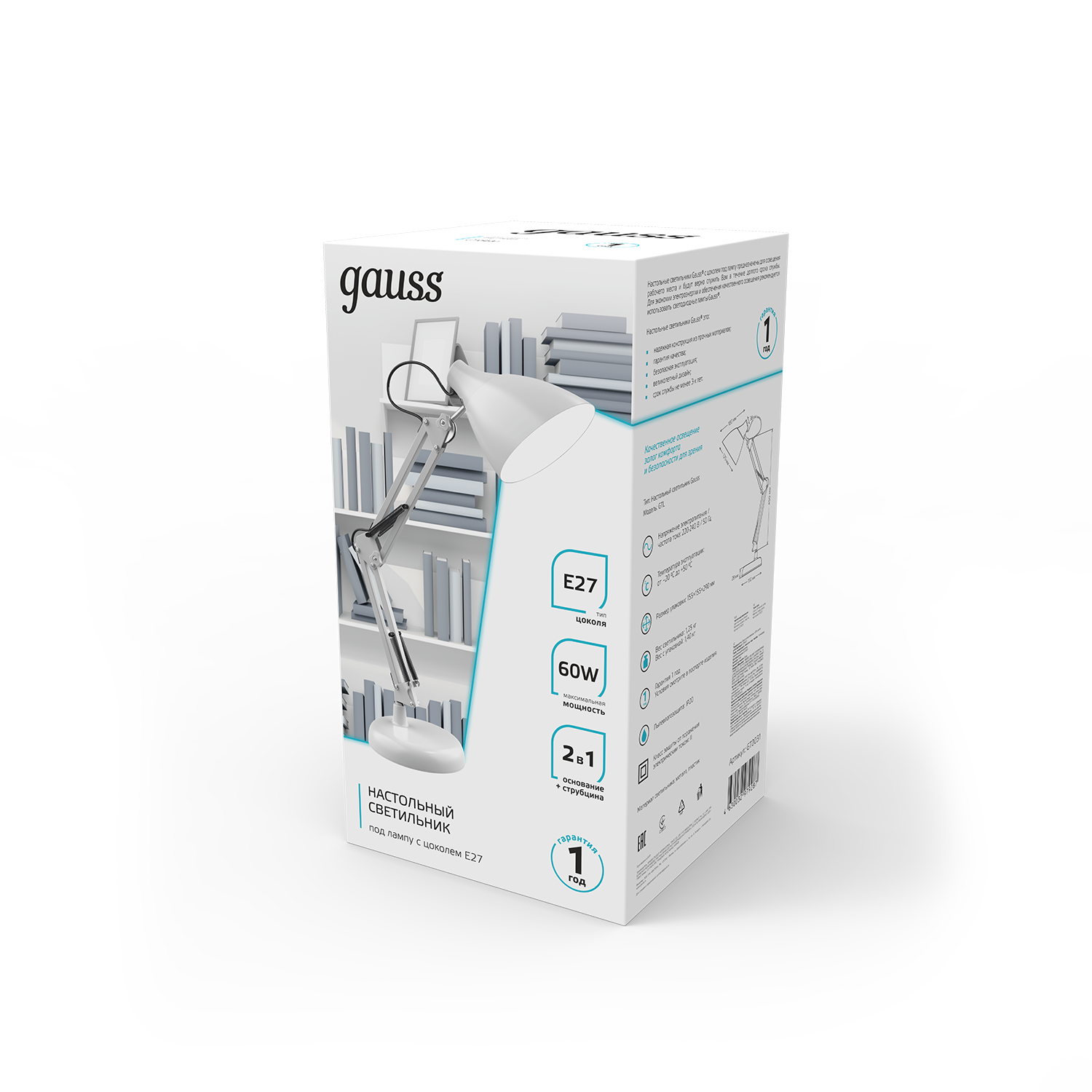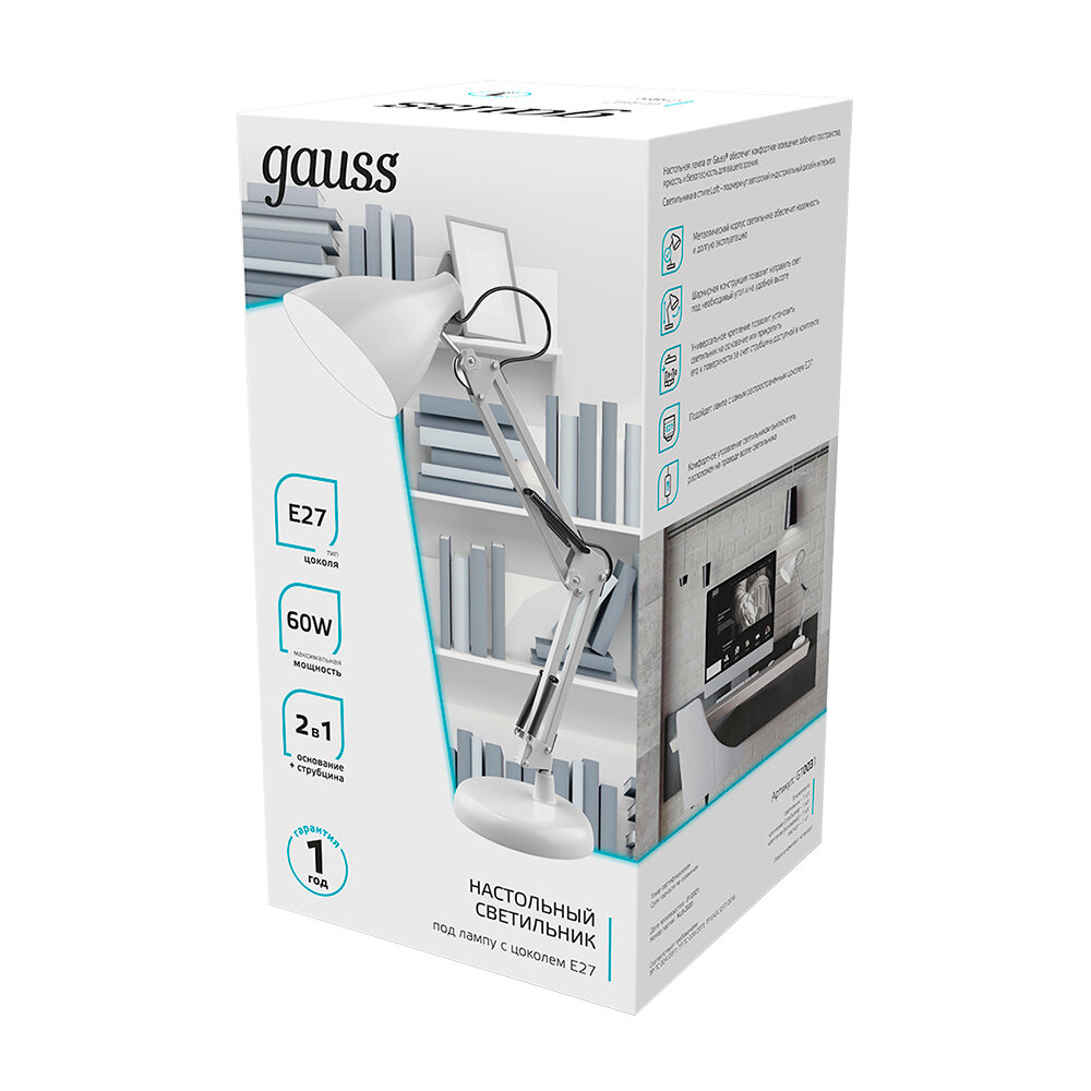 Настольная лампа Gauss GTL003 60W 220-240V E27 белый струбцина и основание 1/12
