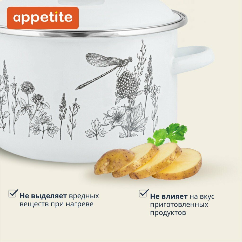 Кастрюля Appetite FLORA-2, сталь, эмалированная, для индукции, для всех видов плит белая, 4 л