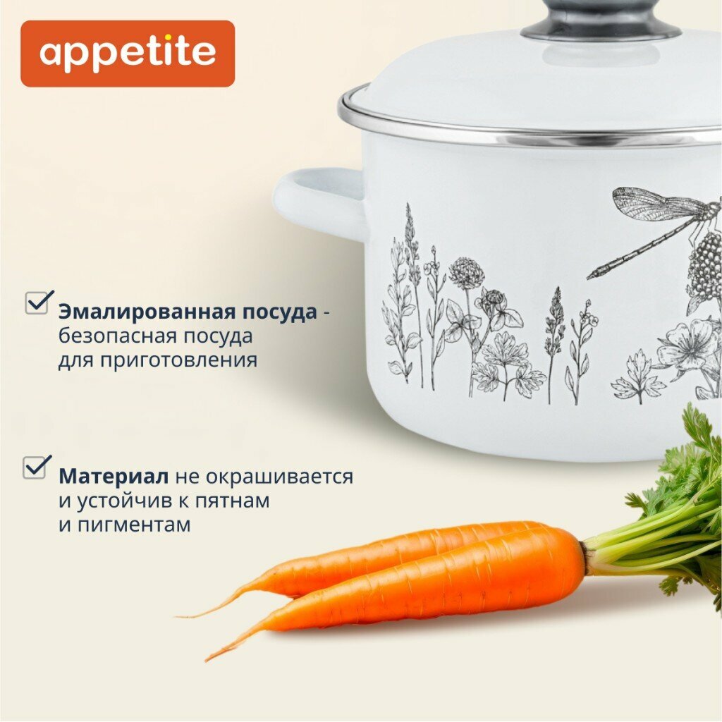 Кастрюля эмалированная Appetite FLORA-2, с крышкой, 4 л