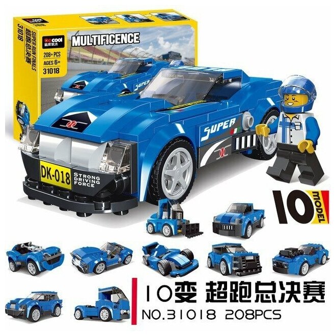 Конструктор Decool Спорткар 31018, 10 вариантов сборки / 208 деталей