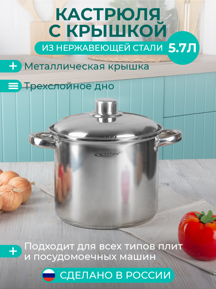 Кастрюля 5,7 л катунь, гретта, KT04-D-53, нерж. сталь, зеркальная полировка